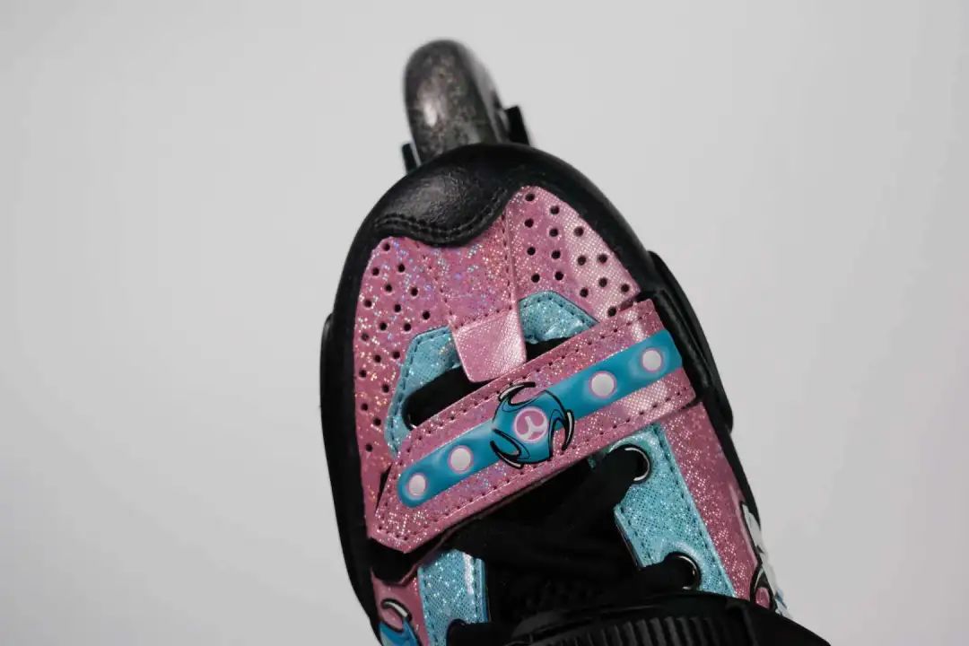 鞋内3in1调码功能鞋垫,通过鞋垫数量调节内长,功能鞋垫舒适脚底贴合,抗震缓冲。鞋头更有魔术贴能量带配置,松紧调节,点单轮不再因为鞋头的紧松而影响发挥。
