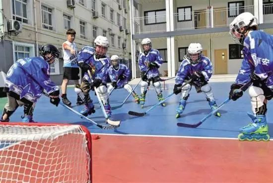 学生们正在进行轮滑球项目训练