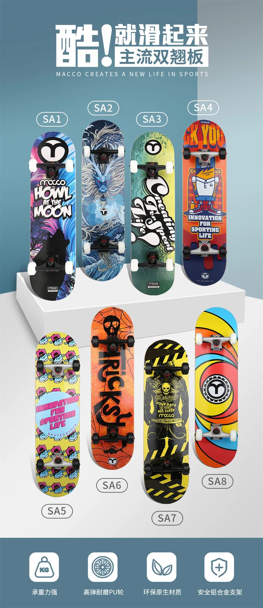 耐用磨砂板面,防滑耐用,摩擦系数大,滑行更安全,踩踏舒适,减少花式动作的难度;